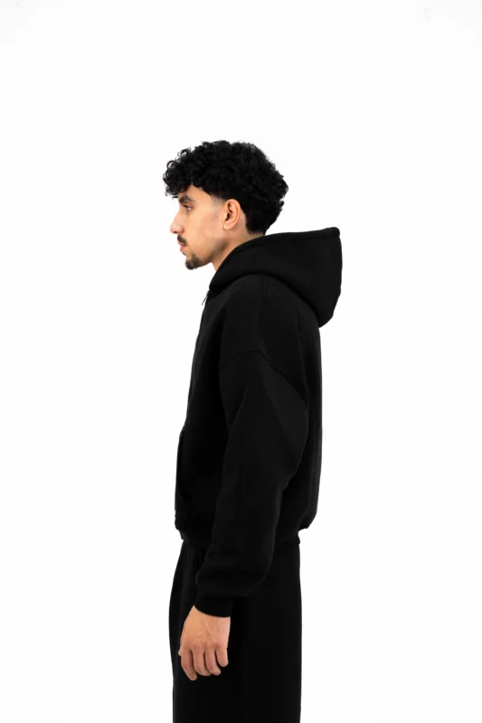 BLACK BASIC ZIPPER HOODIE