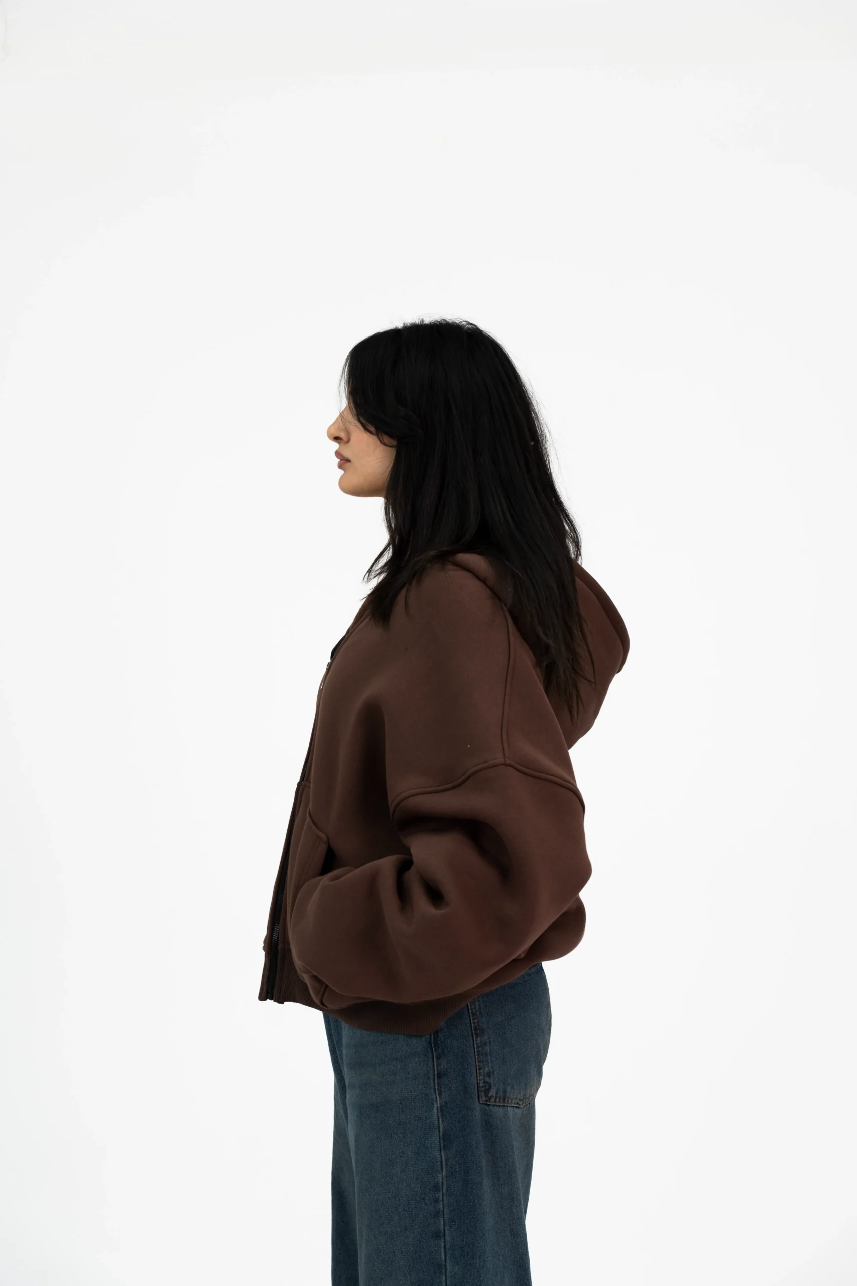 BROWN PRINTED ZIPPER HOODIE
