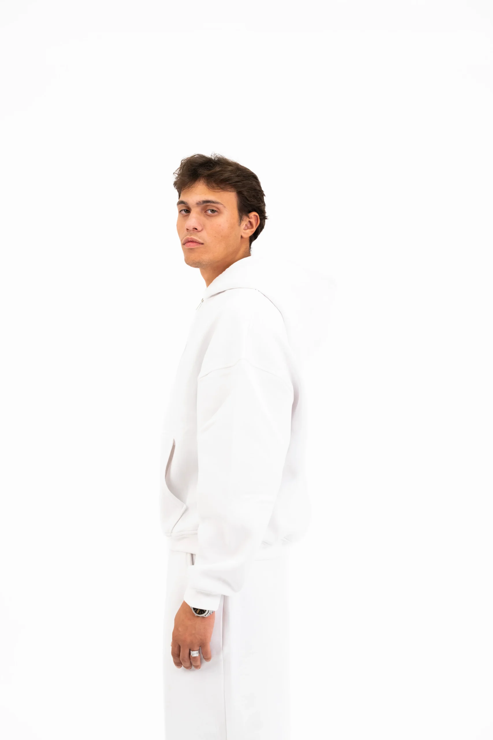 WHITE BASIC ZIPPER HOODIE